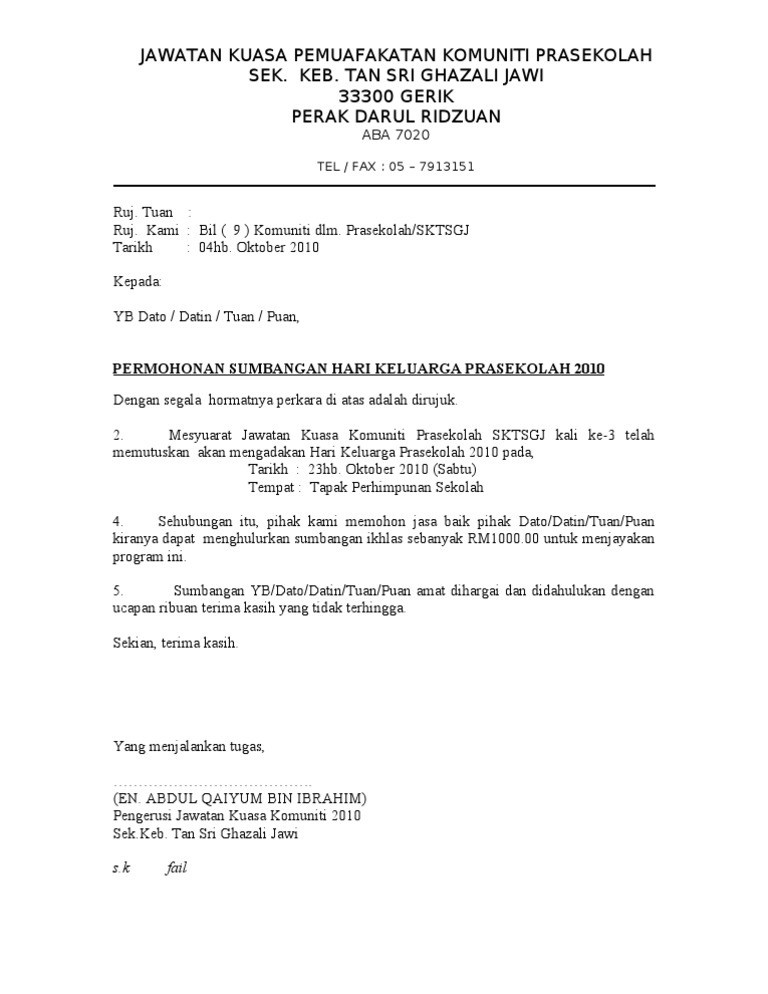 Surat permohonan bantuan dana adalah surat yang menyatakan bahwa yang membaut bermaksud meminta bantuan dana dari sumber dana. Kertas kerja memohon sumbangan penghawa dingin daripada pibg untuk bilik majalah smk sri andalas, klang. Membuat kertas kerja dan laporan. Hasil sumbangan yang yang telah terkumpul akan segera kami salurkan langsung kepada korban maka kami dari tim reuni akbar bermaksud untuk memohon kepada bapak/ibu/saudara(i). Untuk melihat detail lagu contoh surat memohon sumbangan derma pembangunan surau klik salah satu judul memohon sumbangan & derma ikhlas pembangunan kompleks tahfiz mutmainnah.